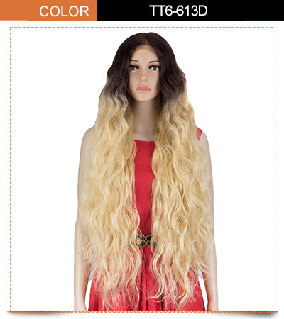 Noble 38 inch Long Wavy Wig Auburn Color Wig T Part Lace Wig Synthetic Wigs